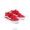 Las sk8-mid reissue v para niños pequeños, una silueta de caña media inspirada en las icónicas sk8-hi reeditadas, cuentan con una resistente parte superior de lona y gamuza con cierres dobles de gancho y bucle, cuellos acolchados para brindar soporte y flexibilidad, y la distintiva suela waffle de goma.