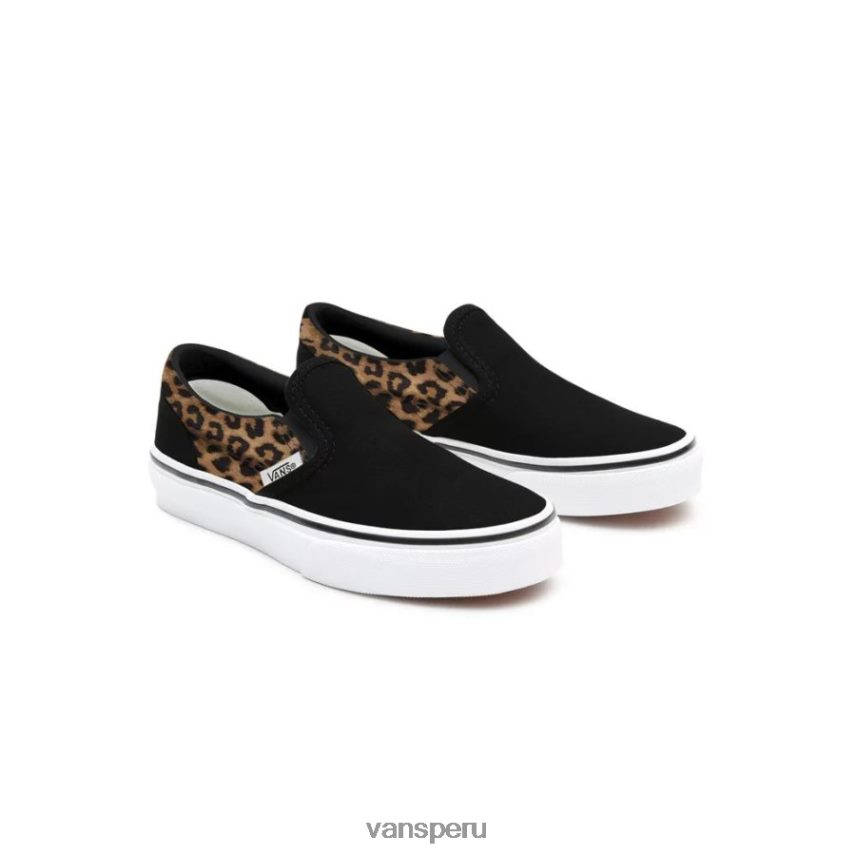 Vans Perú NBDZ461198 único | Vans Zapatos sin cordones de niños customs con estampado de leopardo negro (4-8 años)