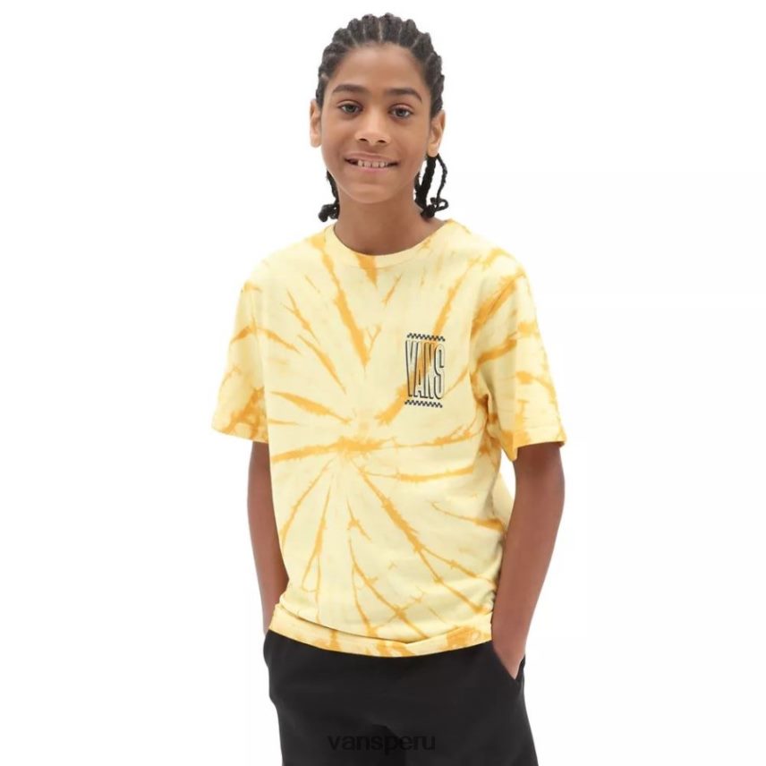 La camiseta con teñido anudado para niños está confeccionada 100 % en algodón peinado e hilado en anillos, con mangas cortas, un diseño teñido anudado en el mismo tono y gráficos característicos del logotipo en el lado izquierdo del pecho.