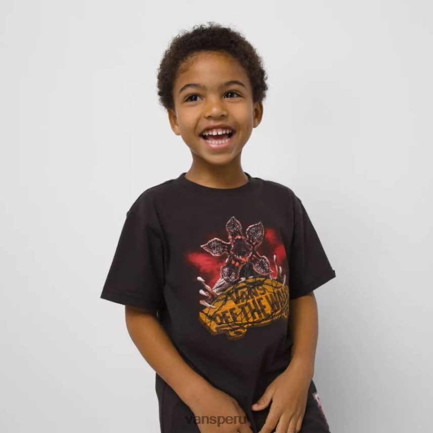 La colección Vans x Stranger Things 4 da vida al mundo de Stranger Things. viaja al revés, surfer boy pizza, hawkins indiana y más a través de la divertida ropa y calzado de vans. Con el demogorgon al frente y al centro, la camiseta para niños pequeños de vans x Stranger Things combina nuestro icónico logotipo de patineta con el monstruo original los héroes de hawkins. Esta camiseta de manga corta está confeccionada con 100 % algodón e incluye una etiqueta con el logotipo de la colaboración personalizada en el dobladillo izquierdo, lo que garantiza que siempre estarás fuera de la pared y boca abajo, listo para tu próxima aventura épica. Solo toma a tu grupo de mejores amigos, un gofre (suela) y prepárate para ser impulsado al mundo de vans x Stranger Things 4.
