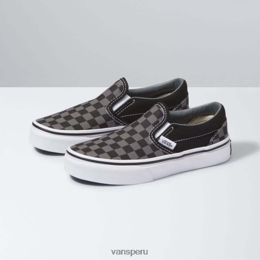 Las clásicas zapatillas sin cordones tienen una parte superior de lona sin cordones de perfil bajo con estampado de cuadros en toda la superficie, laterales elásticos con rayas protectoras y detalles de suela exterior como el original.