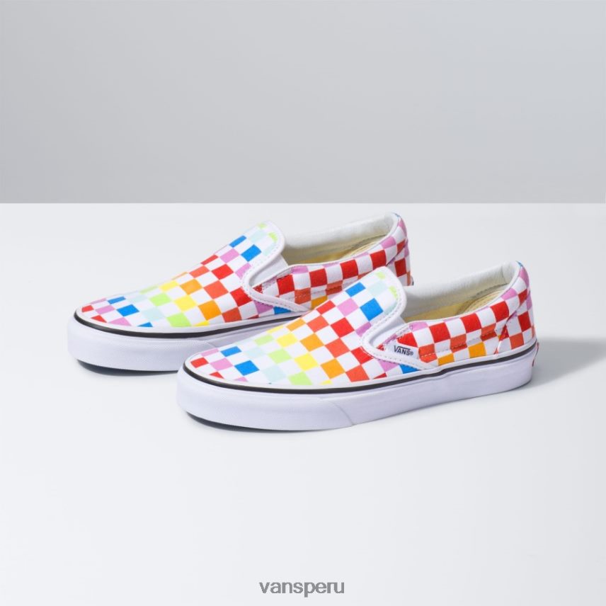 Vans Peru NBDZ461815 blanco verdadero arcoiris | Vans zapatillas sin cordones para niños con diseño de tablero de ajedrez