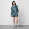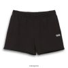 El pantalón corto tipo legging de pizarra está confeccionado en 93 % algodón y 7 % elastano con un logotipo serigrafiado a cuadros en la pierna y una entrepierna de 9 pulgadas. El modelo mide 5 pies y 9 pulgadas de alto, tiene una cintura de 23 pulgadas y usa una talla pequeña.