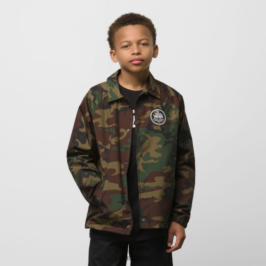Con reminiscencias de las chaquetas deportivas retro, la chaqueta Torrey para niños está confeccionada con una cubierta de poliéster resistente al agua, un forro de poliéster para mayor comodidad y un clásico estampado de camuflaje en toda la prenda. Junto con los gráficos del logotipo de cuadros en el pecho izquierdo, esta chaqueta estilo entrenador fácil de usar tiene un cierre frontal con botones, bolsillos abiertos en las caderas y un cordón en el dobladillo para un ajuste personalizable.