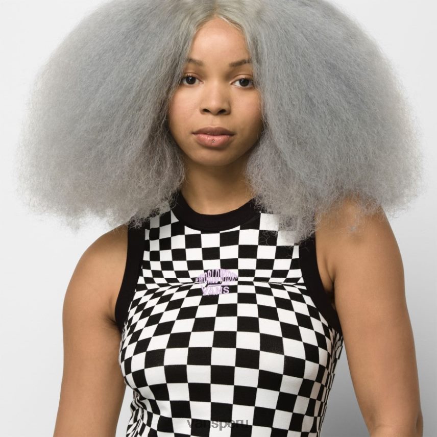 La camiseta sin mangas Vans Worldwide modifica nuestro icónico estampado de cuadros con un patrón de cuadros deformados por toda la prenda. Confeccionada con 96 % algodón y 4 % elastano, esta camiseta de buceo ajustada con un diseño de espalda de nadador también presenta un logotipo bordado en contraste en el centro del frente. El modelo mide 5 pies y 9 pulgadas de alto y usa una talla pequeña.