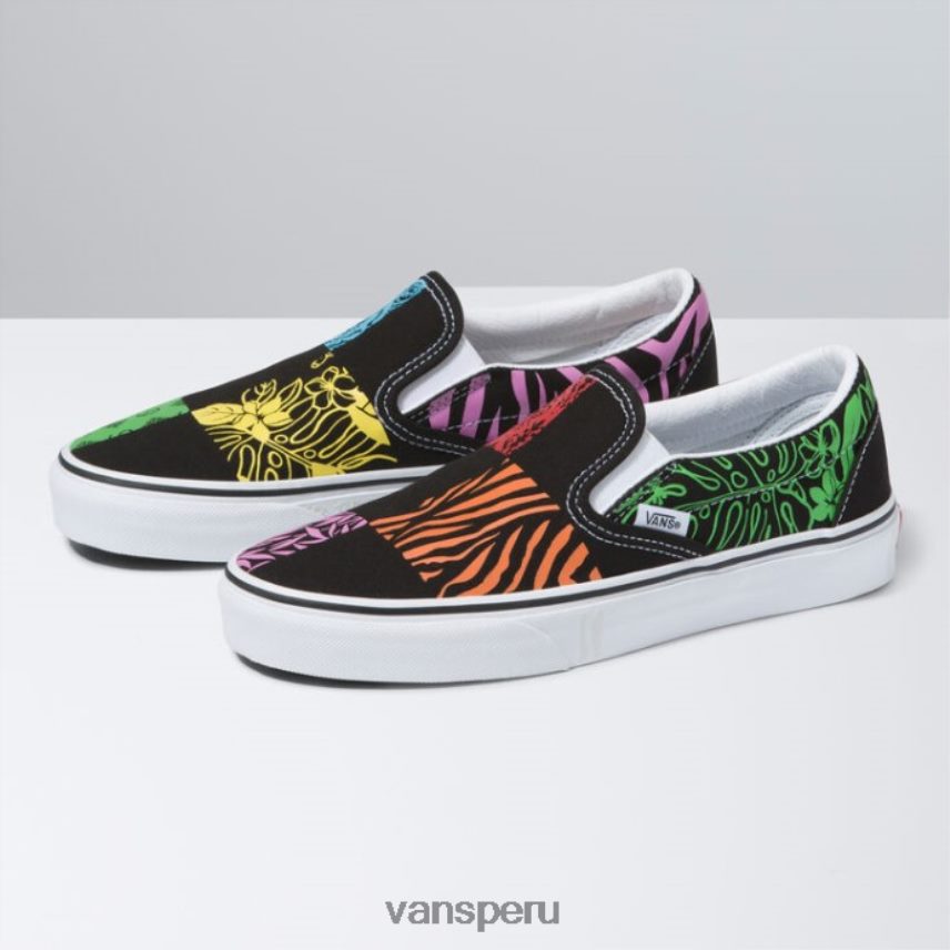 construidas con una silueta sin cordones atemporal, las Crayola Classic Slip-on presentan una mezcla de cuadros de Estampados florales y animales inspirados en los colores icónicos de Crayola. Este zapato clásico también incluye parte superior de lona resistente, ojales de metal y la distintiva suela tipo waffle de goma. – colección vans x crayola – zapato sin cordones icónico de vans – parte superior de lona resistente con estampados mixtos – cuellos acolchados de apoyo – detalles laterales elásticos – distintiva suela waffle de goma