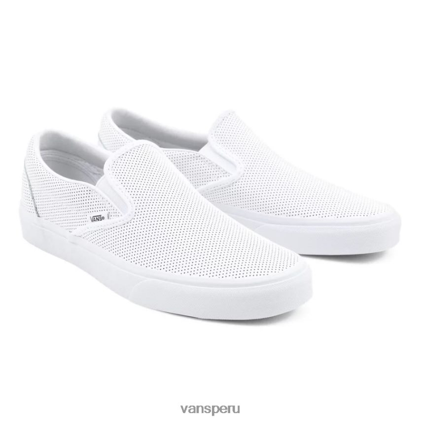 Presentadas por primera vez en 1977, las Vans #98, ahora conocidas como las clásicas sin cordones, se convirtieron instantáneamente en un ícono en el sur de California. Un avance rápido hasta el día de hoy, y el clásico slip-on es conocido en todo el mundo por su silueta cómoda, fácil uso y diseño querido. Con parte superior de cuero perforado para una apariencia elevada, el clásico slip-on de cuero perforado es un elemento esencial para todos los días con verdadero ” estilo “fuera de la pared”. Este icónico zapato sin cordones también incluye cuellos acolchados con soporte, detalles laterales elásticos y la distintiva suela waffle de goma.