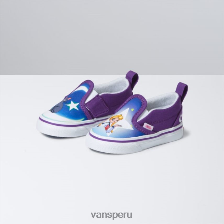 la bonita guardiana Sailor Moon Slip-on V también incluye parte superior de tela, cuellos acolchados de apoyo, detalles laterales elásticos y la distintiva suela waffle de goma. – Colección vans x Pretty Guardian Sailor Moon – El icónico zapato sin cordones de Vans hecho para niños pequeños – Ilustración de Sailor Moon con tinta que brilla en la oscuridad – Cierres laterales de gancho y bucle – Lengüetas para tirar en el talón – Parte superior de tela de perfil bajo – cuellos acolchados de apoyo – detalles laterales elásticos – suela waffle de goma distintiva