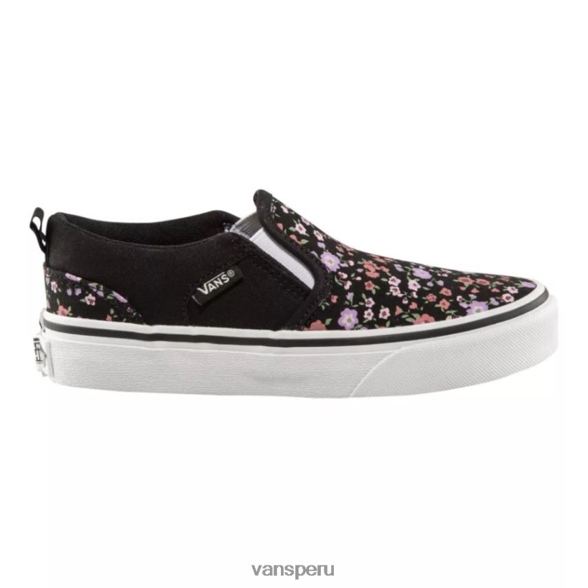 Vans Perú NBDZ464316 floreciente floral blanco y negro | Vans zapatos de skate con estampado floral Asher para niña de grado/preescolar