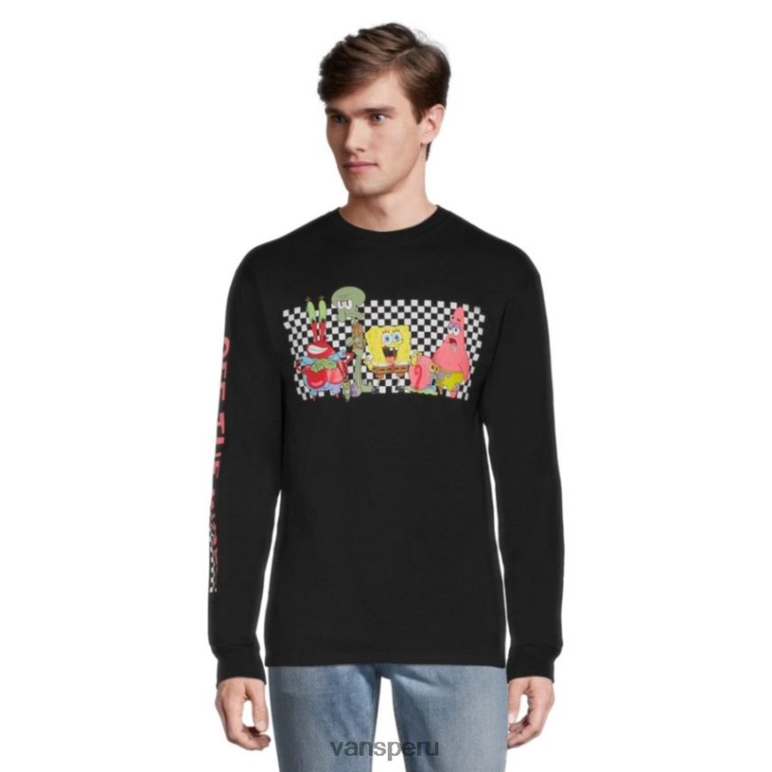 Vans Peru NBDZ464345 negro | Vans Camiseta con personajes de Bob Esponja para hombre, manga larga, cuello redondo, algodón, informal