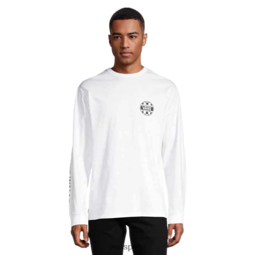 Vans Peru NBDZ464491 blanco negro | Vans Camiseta de manga larga con cuello redondo y cuadros off the wall para hombre