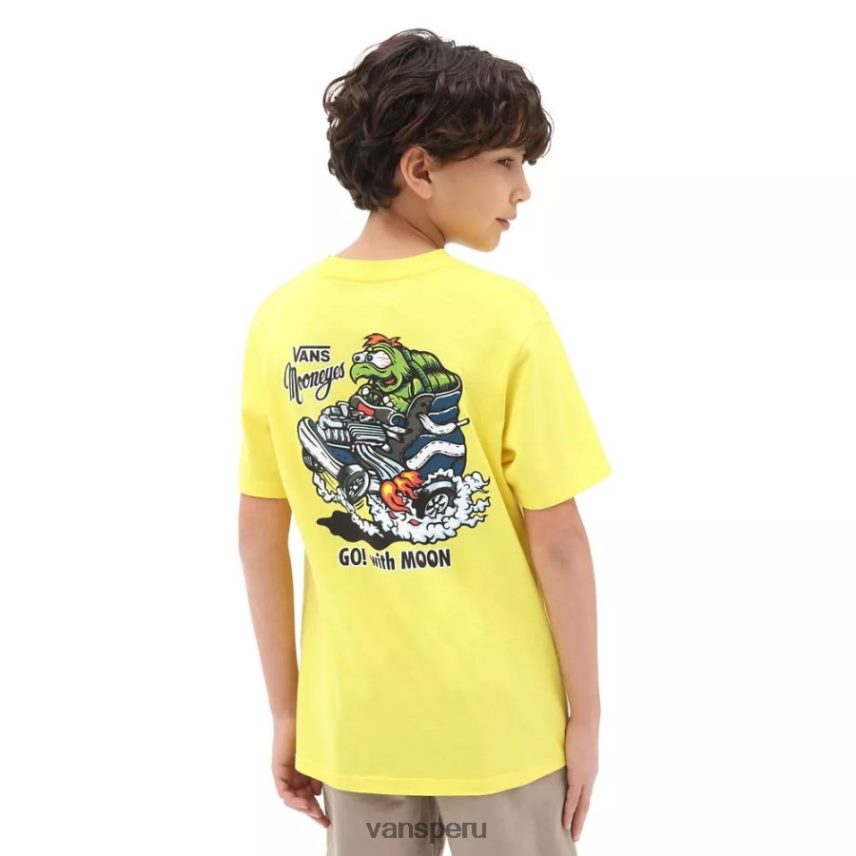 Los productos y logotipos de Mooneyes son una parte indeleble de la nostalgia del hot rod, fácilmente reconocibles tanto para los amantes de los engranajes como para los novatos. ubicado en santa fe springs, california, desde la década de 1950, mooneyes es conocido por producir piezas de alta calidad para hot rods y motocicletas que lucen geniales y hacen bien el trabajo. Rindiendo homenaje a las historias históricas tanto de las furgonetas como de los mooneyes, los chicos mooneyes La camiseta combina marcas icónicas de ambas compañías con algodón peinado hilado en anillos y un llamativo color amarillo. en la parte posterior, una tortuga de dibujos animados corre con un zapato sk8-hi para darle un guiño adicional a nuestra herencia.