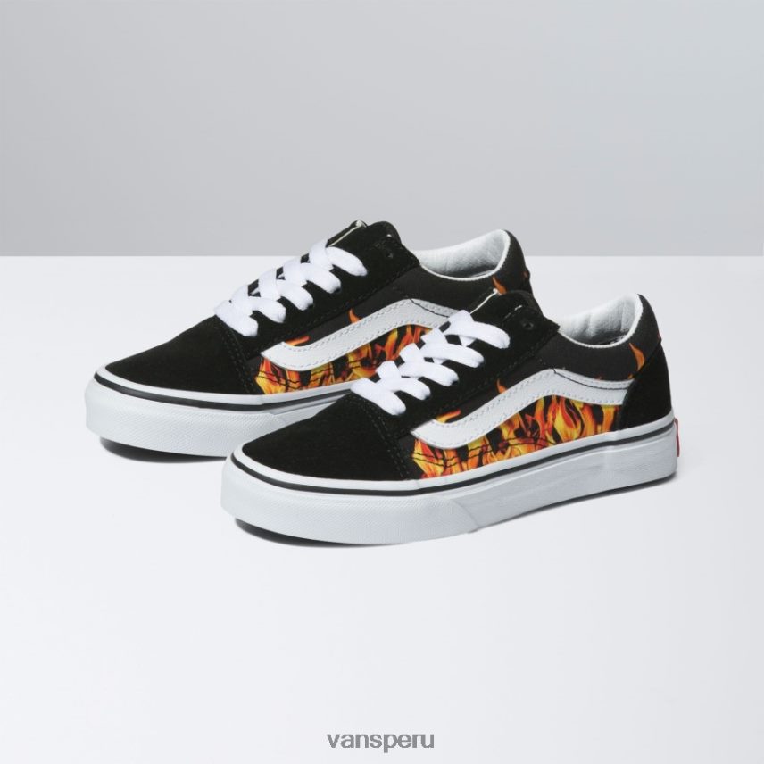 Con una resistente parte superior de ante y tela con un vibrante estampado de llamas, las digi flame kids old skool rinde homenaje a nuestra herencia y al mismo tiempo garantiza que este zapato bajo con cordones siga siendo tan icónico como siempre. también incluye puntera reforzada, cuello acolchado de apoyo y la distintiva suela waffle de goma.