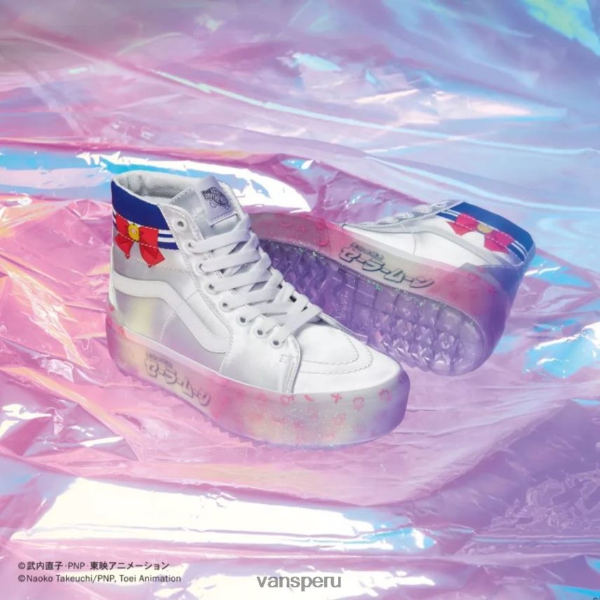 Vans y Pretty Guardian Sailor Moon se han unido para una colaboración especial que celebra el amor y la justicia para todos. Esta colección de calzado y ropa te invita a formar equipo con los guardianes marineros y honrar el popular anime. Llevando nuestro legendario estilo de caña alta a un nivel completamente nuevo, las vans x Pretty Guardian Sailor Moon sk8-hi stacked traen la diversión del icónico mostrar en cada paso. Destacando características de gran tamaño y capas inesperadas como protectores de plataforma, suelas exageradas y cinta protectora translúcida, este zapato de plataforma elevada actualiza un favorito icónico al tiempo que combina el ADN de Vans con detalles del traje icónico de Sailor Moon. también incluye parte superior de cuero y tela con cordones y cuellos acolchados con soporte.