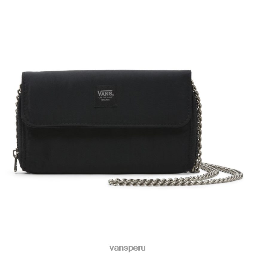 La cartera cruzada con cadena es una cartera cruzada 100 % nailon con forro 100 % poliéster y una correa de cadena. mide 3,5 alto x 6,25 ancho x 1,25 profundidad pulgadas.