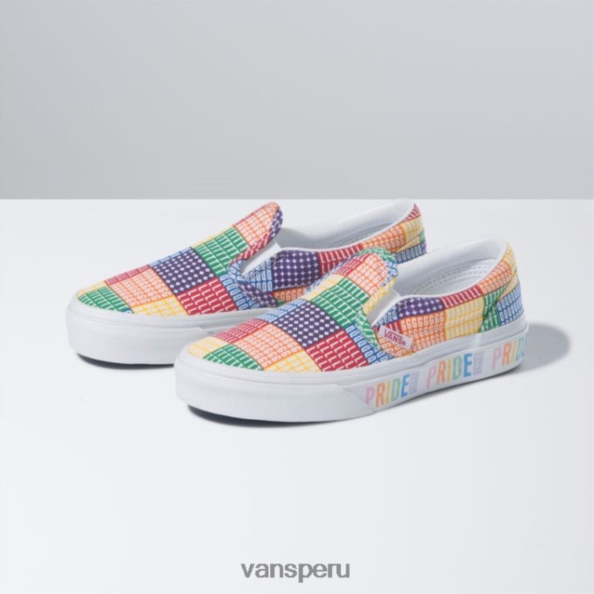 Para celebrar a la comunidad lgbtq+ y promover la libre expresión, esta colección fue diseñada para apoyar una sociedad más igualitaria e inclusiva. Inspirándose en las celebraciones del orgullo en todo el mundo, las clásicas zapatillas sin cordones del orgullo incorporan un caleidoscopio de color con estampados atrevidos y un toque de Vans en un icónico estampado de arcoíris. El zapato también incluye detalles laterales elásticos, cuellos acolchados, un estampado en la pared lateral y la distintiva suela waffle de goma de Vans.