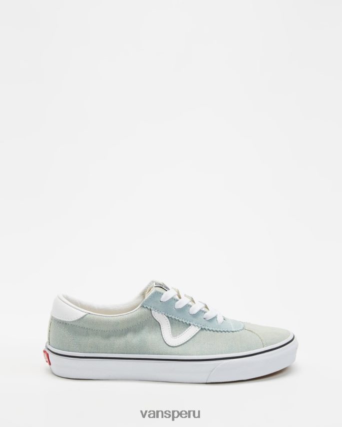 – mezclilla lavada y verde pálido sombras; Detalles en blanco óptico