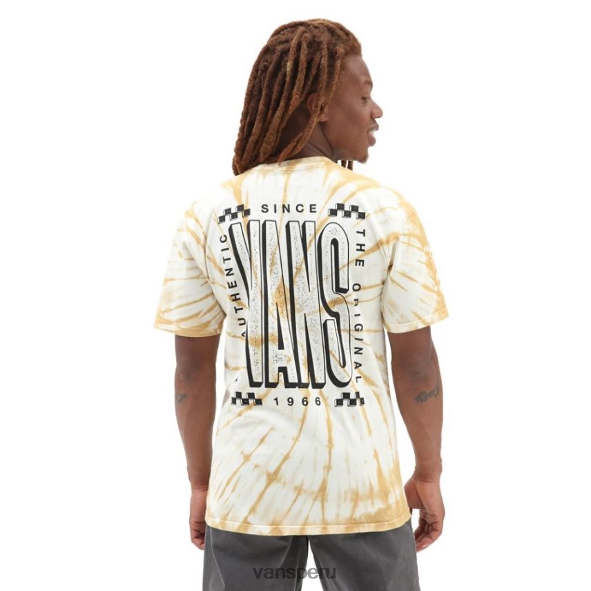 La camiseta alta con teñido anudado es una camiseta de algodón 100 % cardado e hilado en anillos de mayor gramaje que presenta un teñido anudado en todo el tono, mangas cortas y gráficos del logotipo de cuadros en el lado izquierdo del pecho y en la espalda. tipo de ajuste: premium.